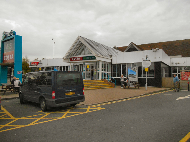 Ferrybridge Services opened in April 1985 as Granada’s thirteenth site and the first developed privately without government direction, built on a former bone manure works. Located at the M62/A1(M) intersection, it was branded worst in Britain by Which? in 2000. The Little Chef closed in 2008, one of the last on motorways. Traffic reduced after A1(M) improvements in 2006 created a convoluted access route. A trial fish and chip shop called Ernie’s opened in 2013. Operated by Moto.