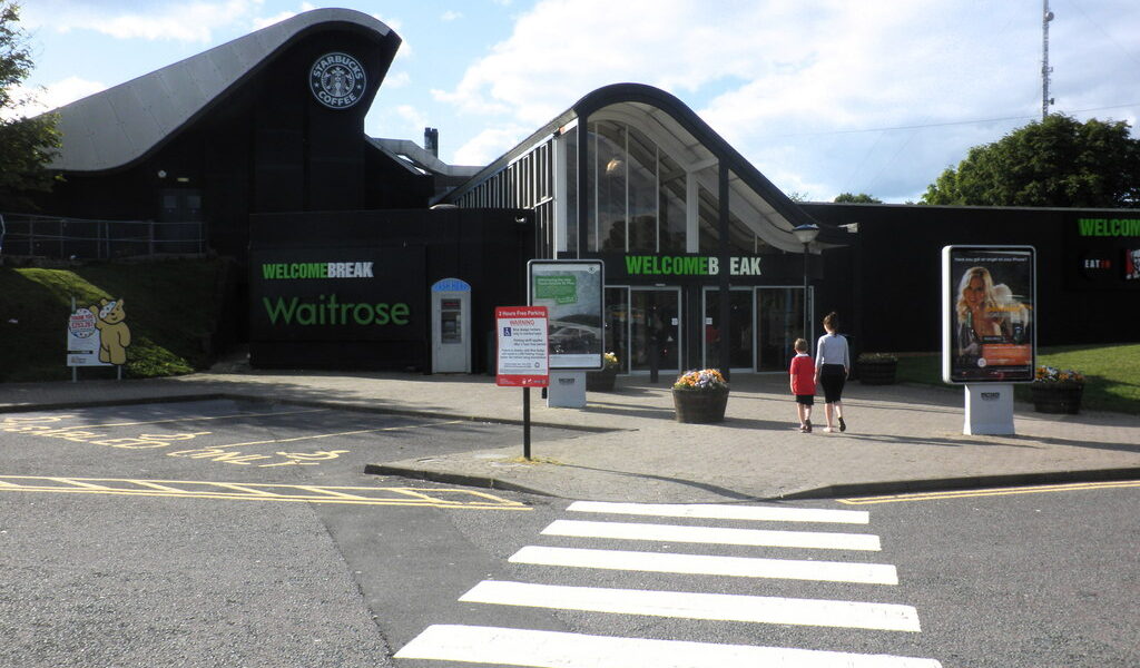 Membury Services opened in stages from 1972-73 on the site of RAF Membury, a World War II airfield. A tribute to those who served stands in the car park. Contractors delayed Ross Group’s access to the site, damaging their reputation and finances. In 1977, Ross added an unusual garden centre to the westbound services. Prime Minister John Major famously queued for chips and chilli con carne here in 1991. Operated by Welcome Break, it features David Fisher murals reflecting local history.