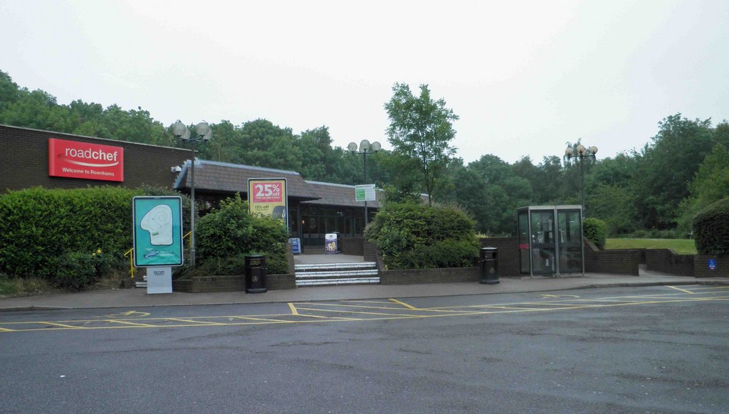 Rownhams Services opened in 1976 on the M27, with a subway connecting the two sides to reduce visual impact. The Prior Report of 1978 compared operating it to ‘running an ocean liner while waiting for the tide to come in’ due to incomplete surrounding motorways. The Department of Transport called it ‘the white elephant.’ Trees were removed during 2008 roadworks, making the previously hidden building visible. Now Roadchef’s showcase featuring their flagship Leon and SPAR brands.